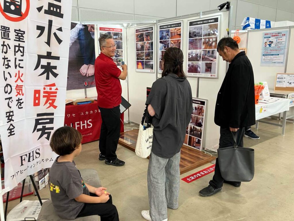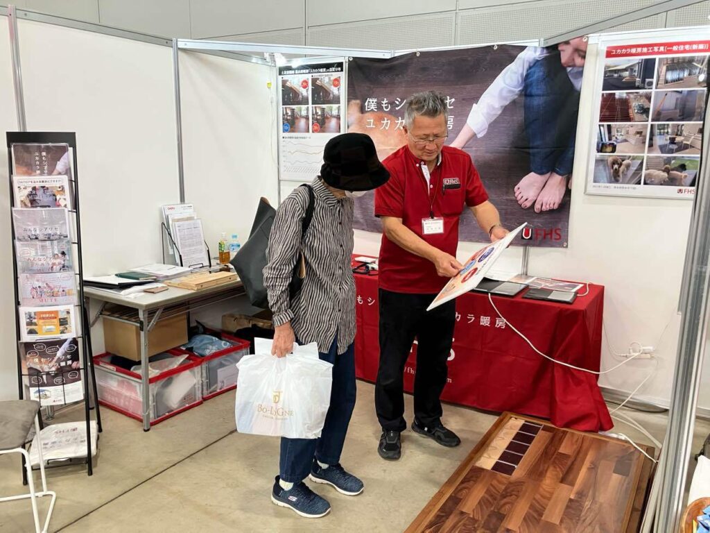 当日はステージでの説明の他、実演ブースにも多くのお客様にお立ち寄りいただきユカカラ暖房の暖かさを体感いただきました。