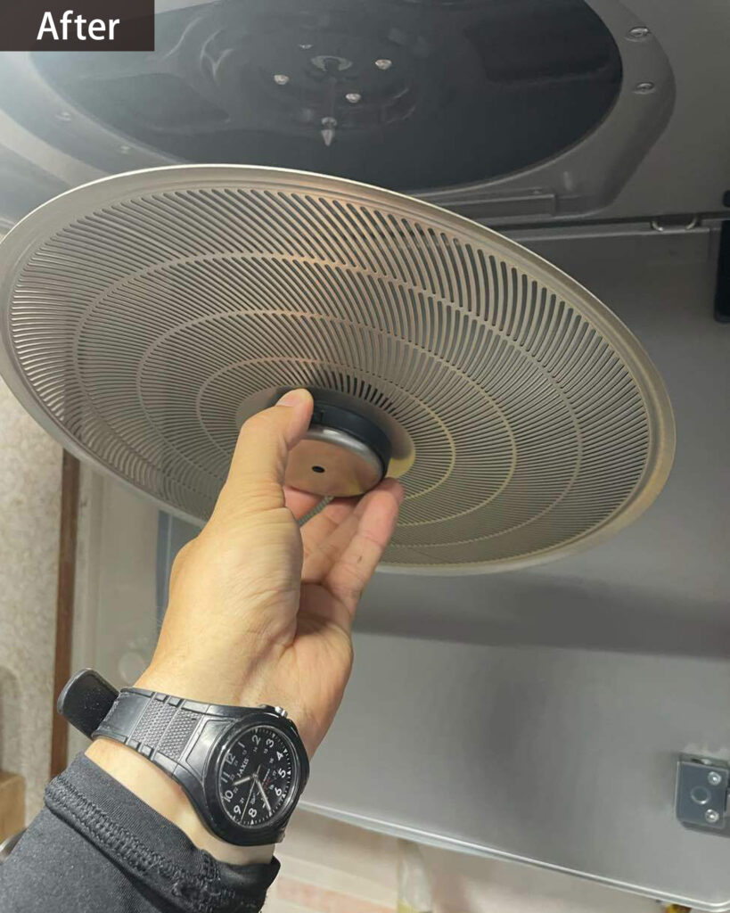ワンタッチで外れるディスクが油をはじいてくれる為、面倒なファンの清掃が不要です!お客様大変喜ばれていました☻
