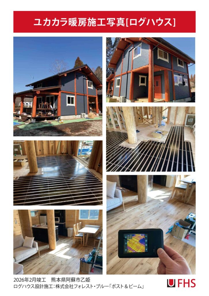 熊本県阿蘇市乙姫にあるペンション村のログハウス新築にあたり、ユカカラ暖房を施工しました。